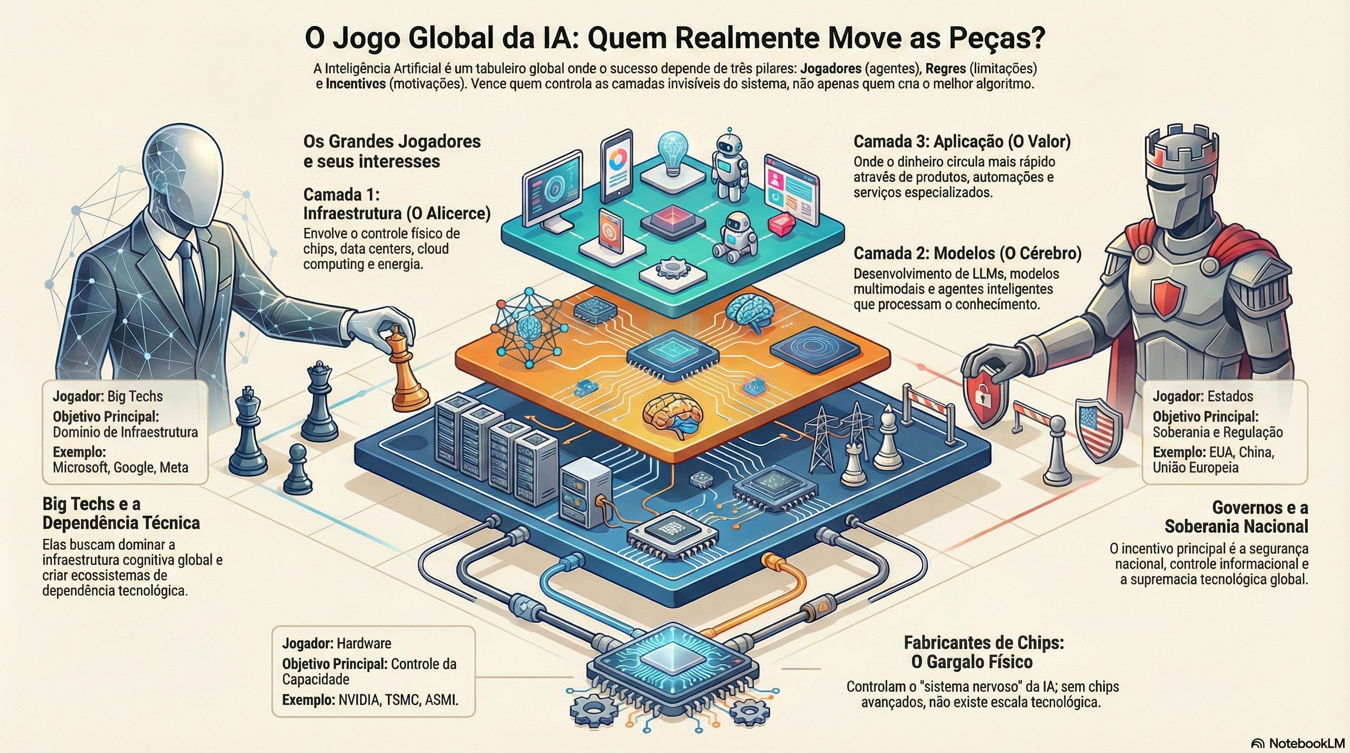 O problema é que, enquanto o feed debate ferramenta, o mercado global está jogando xadrez geopolítico com infraestrutura cognitiva. E muita gente nem percebeu que já entrou no tabuleiro.